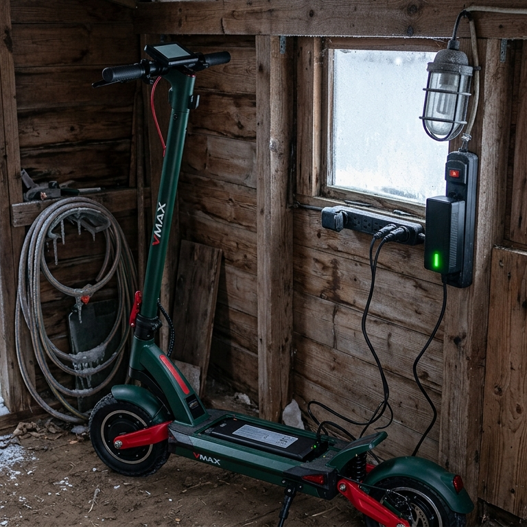 Aufwärmen lassen: Bring den Scooter in die Wohnung oder einen beheizten Flur.