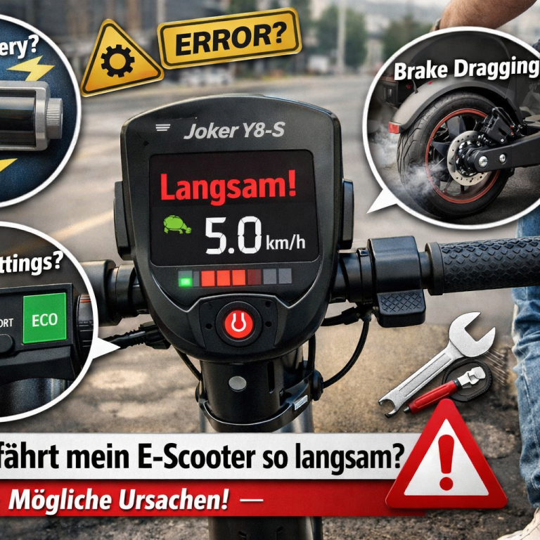 1. Check das P-Menü: (Parameter P15): Der Joyor hat ein „Geheimmenü“. Wenn der Wert unter P15 (Leistungsbegrenzung) verstellt wurde (z.B. auf 50 statt 100), fährt der Scooter nur noch mit halber Kraft.